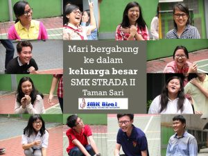 SMK Strada II mengucapkan terima kasih atas kepercayaan Bapak-Ibu yang telah memilih kami sebagai tempat pendidikan dan pembinaan karakter yang unggul, peduli, dan berjiwa melayani dalam rangka mempersiapkan putra dan putri Bapak-Ibu untuk masuk ke dalam dunia kerja.