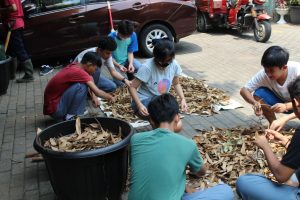 Beberapa siswa dan pendamping memilah botol plastik yang sudah tidak terpakai, dibuang label dan tutupnya, kemudian botol di remas dan dikumpulkan ke dalam plastik. Kemudian setelah terkumpul disetorkan ke bank Sampah RW.